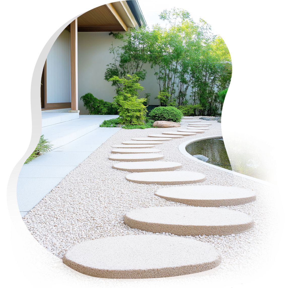 สามารถเลือกแผ่นทางเดินที่มีลวดลายธรรมชาติ เช่น ไม้ หรือหิน เพื่อให้เข้ากับบรรยากาศของสวน